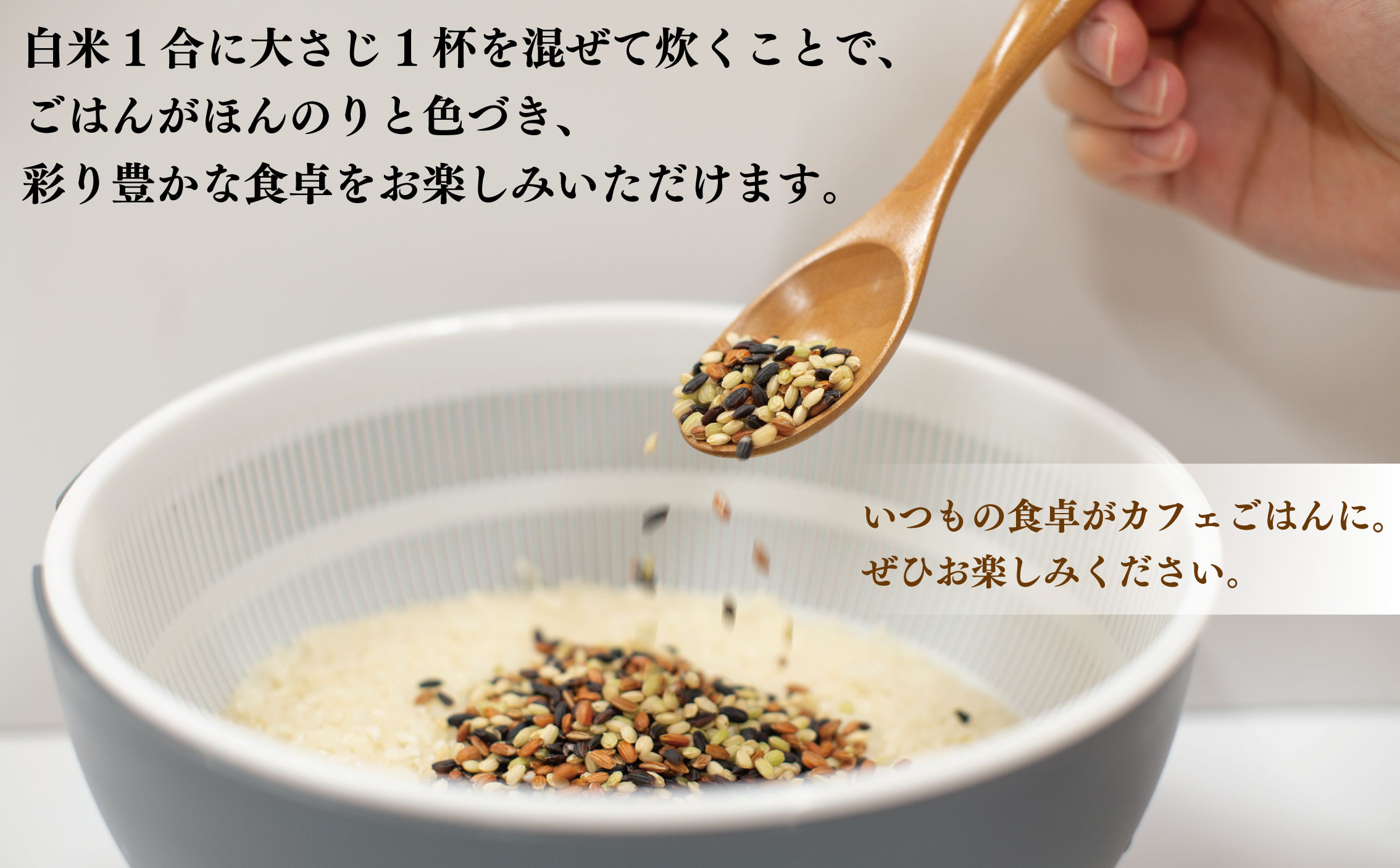 白米に比べ栄養価が高く、ビタミン、ミネラル、食物繊維も豊富です。白米1合に大さじ1杯を混ぜて炊くことで、ごはんがほんのりと色づき、彩り豊かな食卓をお楽しみいただけます。