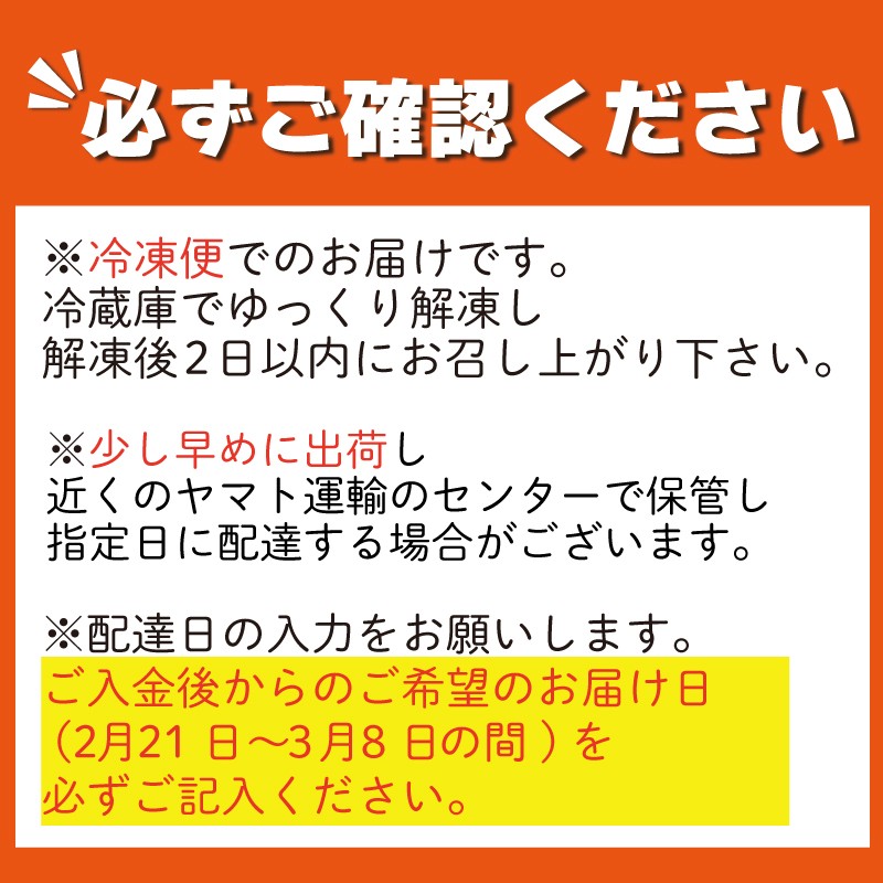 ※冷凍便でのお届けとなります。冷蔵庫でゆっくり解凍し、お召し上がりください。