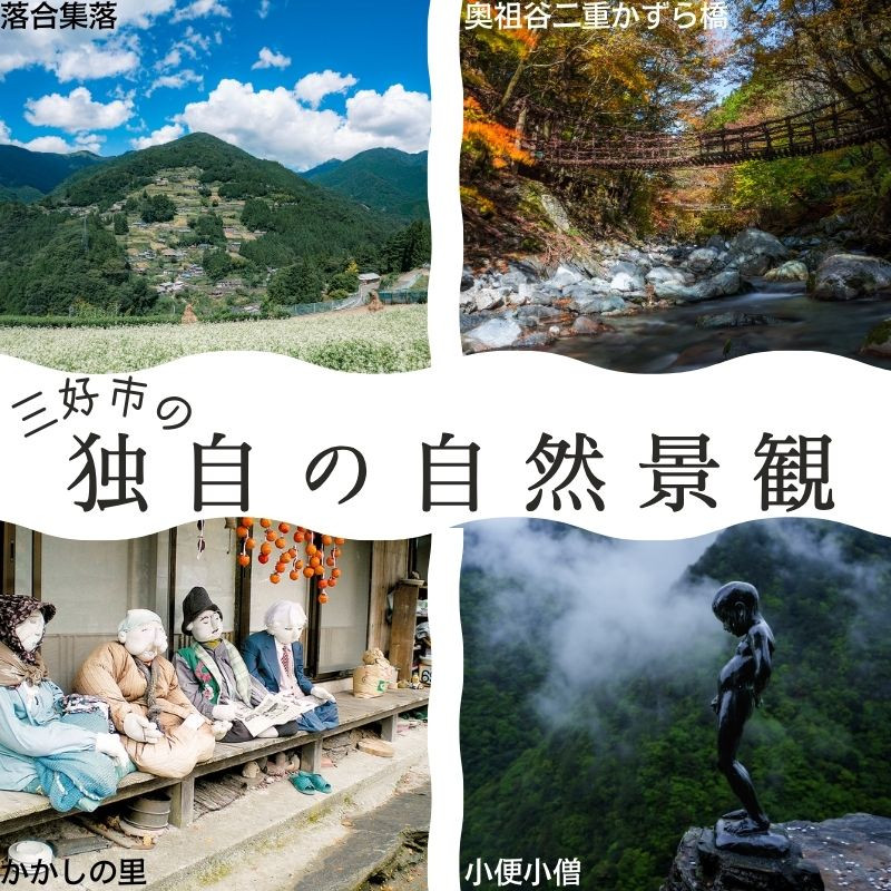 「日本三大秘境」の一つに数えられる三好市には、大自然が生んだ多くの景勝地や、温泉、郷土料理、水上アクティビティなど、三好市ならではの様々な体験を楽しむことができます。