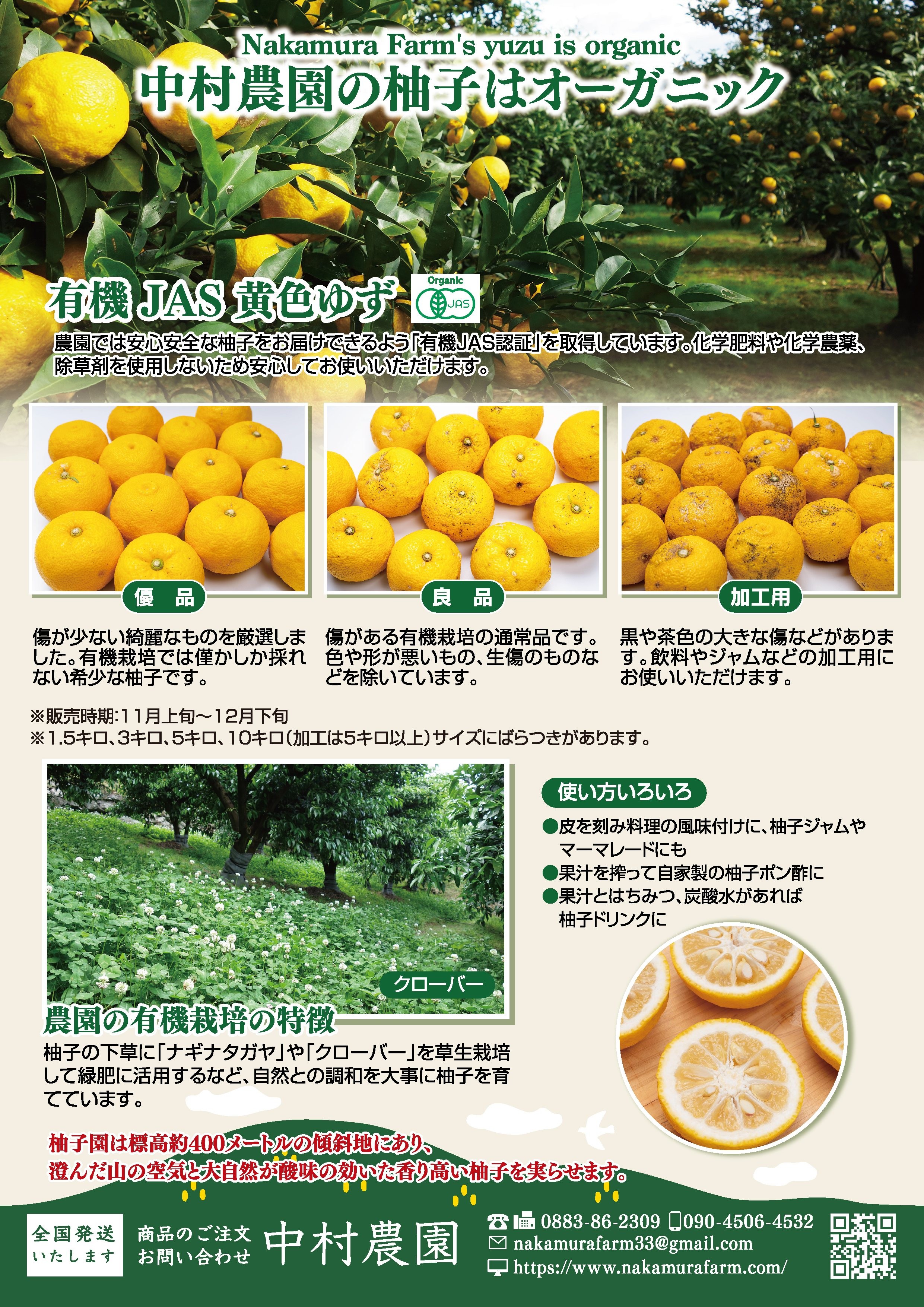 中村農園では安心安全な柚子をお届けできるよう「有機JAS認証」を取得しています。