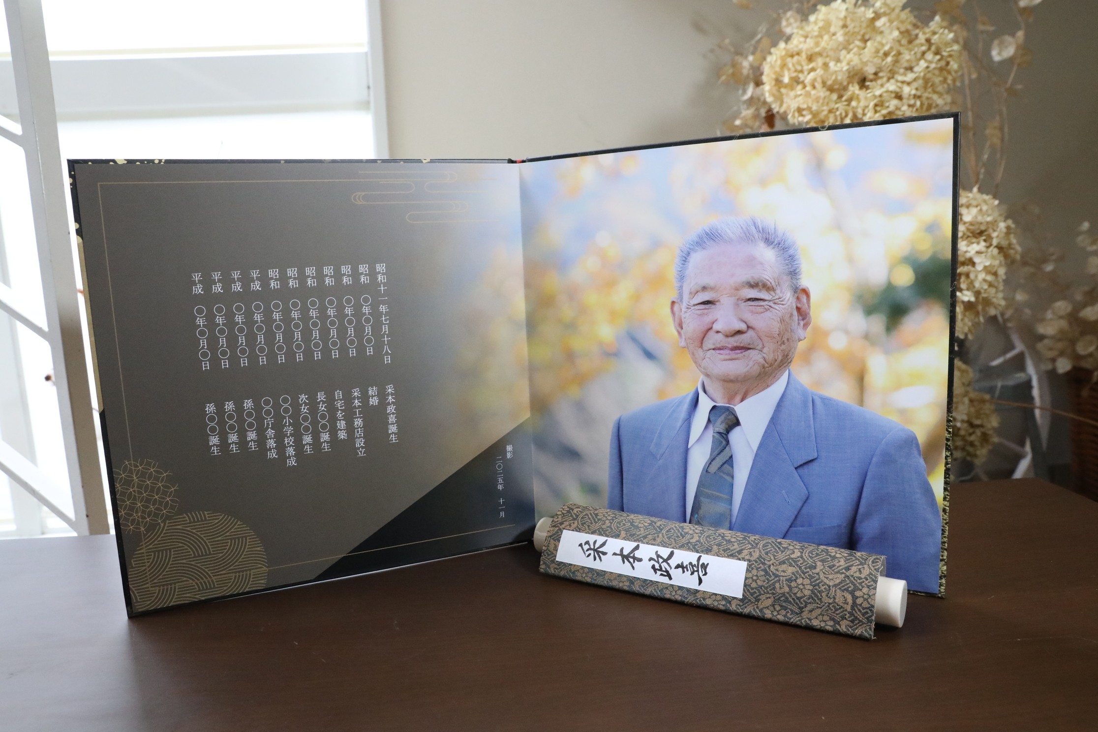時をつむぐ贈りもの 撮影 写真 アルバム インタビュー 自叙伝 巻物 贈り物 撮影プラン 記念写真 しゃしん チケット 写真 カメラ 家族 思い出 祖父 祖母 歴史 子ども キッズ 七五三 結婚式 成人式 記念撮影 家族写真 ロケーション 出張撮影 アニバーサリーフォト 出張カメラマン ギフト プレゼント 三好市