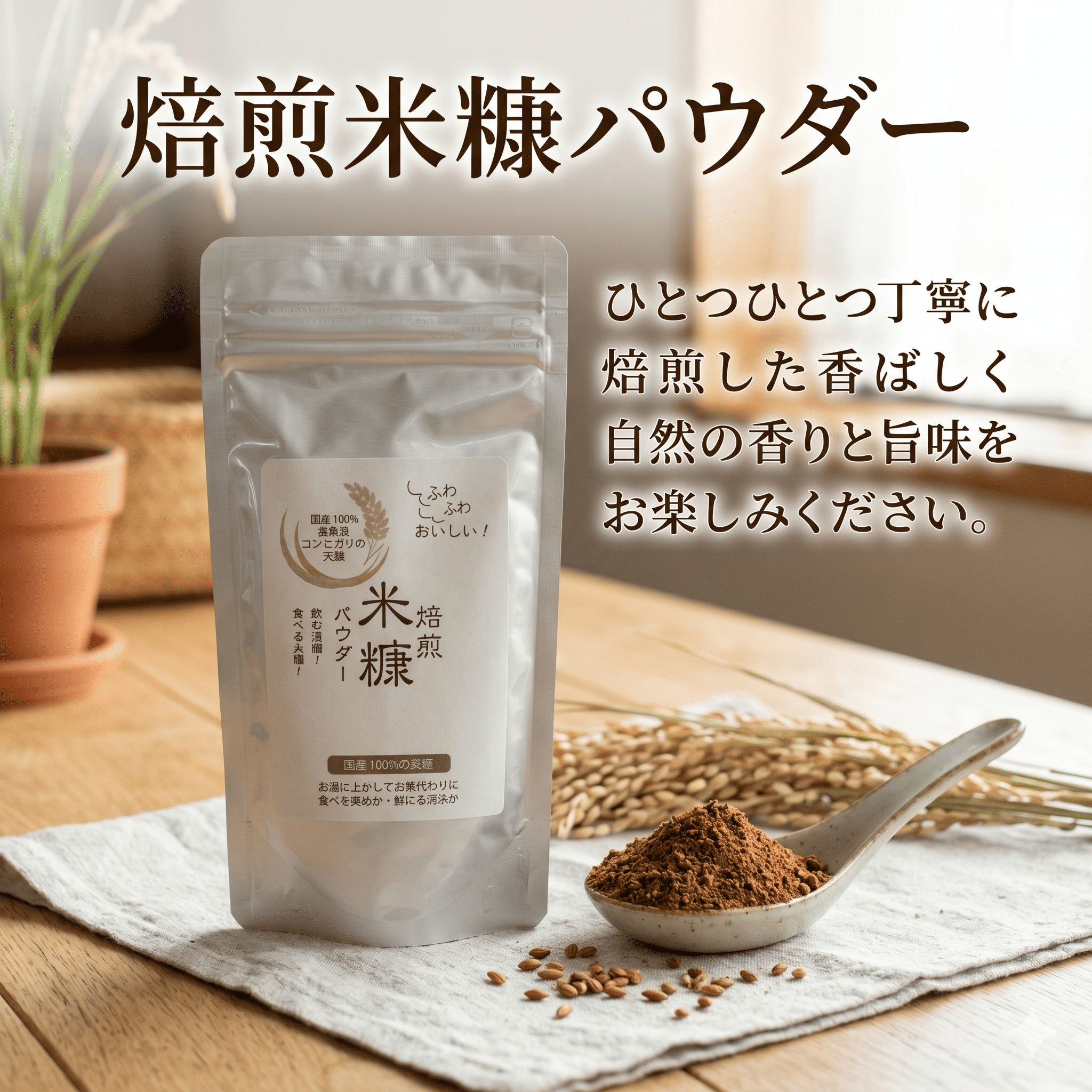 国産米由来の「米ぬかパウダー」は、精米の過程で生まれる米ぬかを丁寧に加工し、使いやすいパウダー状に仕上げました。