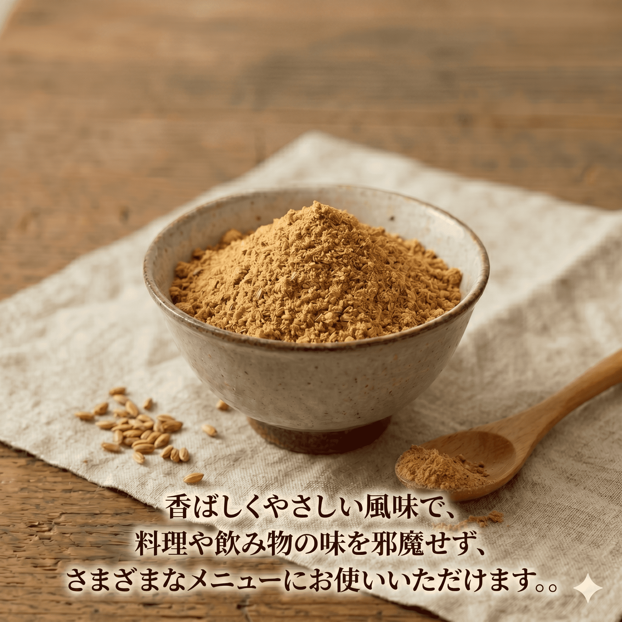 米ぬかには、食物繊維やビタミンEをはじめとした栄養成分が含まれており、日々の食生活に取り入れやすい素材として注目されています。香ばしくやさしい風味で、料理や飲み物の味を邪魔せず、さまざまなメニューにお使いいただけます。