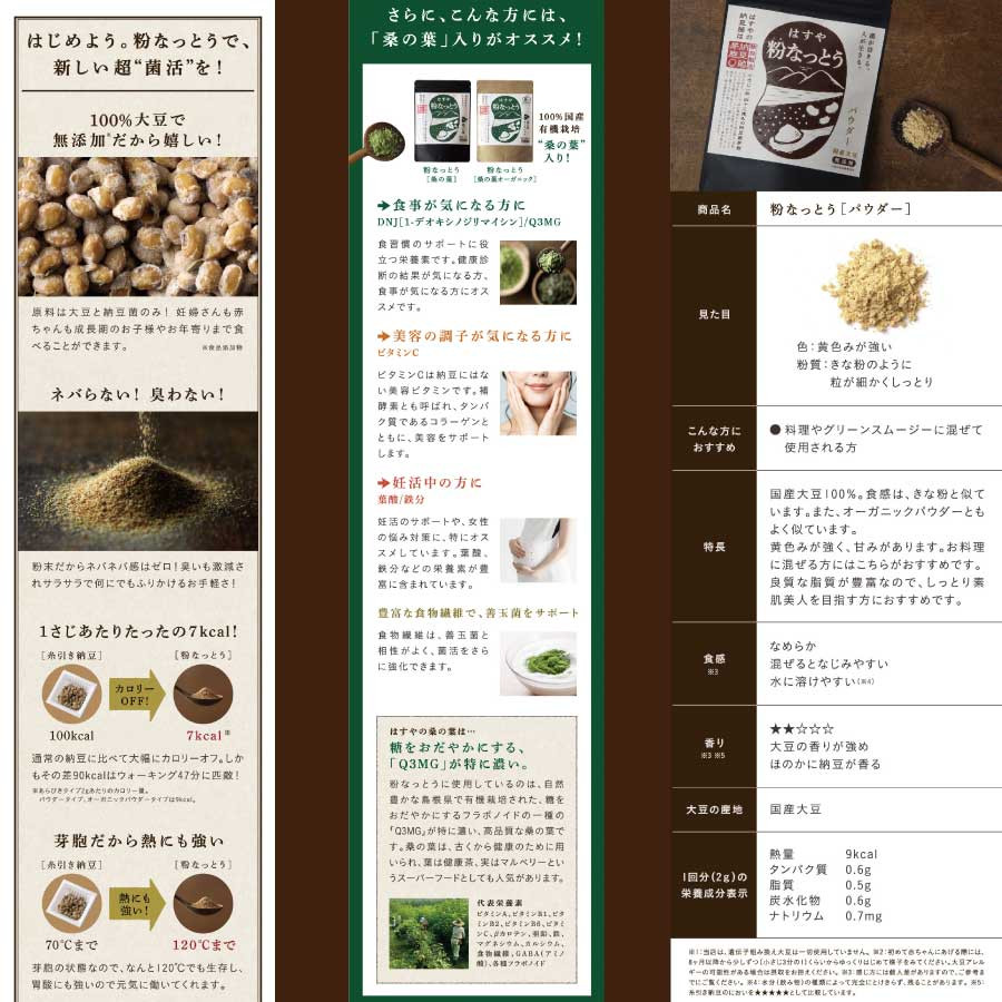 | 容量 | 1回目:粉なっとう(パウダー)180g 2回目:粉なっとう(パウダー)180g 3回目:粉なっとう(パウダー)180g |
