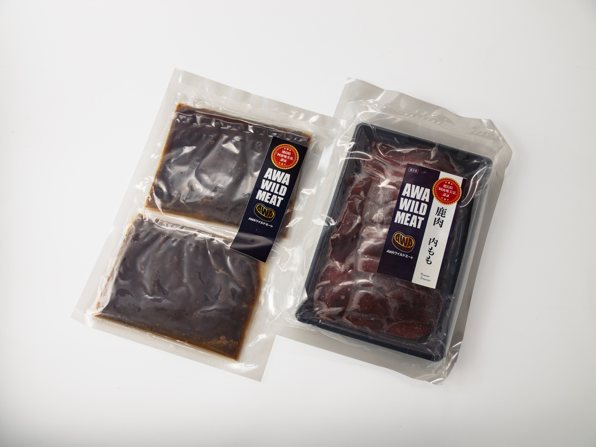 佐那河内村内で捕獲されたニホンジカを生きたままの状態で、阿波地美栄認証の鹿加工施設へ搬入し、解体から商品化まで、一貫して行っており、柔らかく、癖のない肉製品に仕上げました。