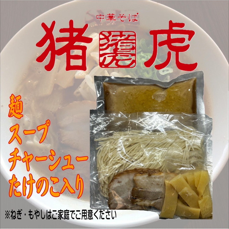 徳島で大人気の「中華そば猪虎」の中華そばがご自宅で食べられます!!麺・チャーシュー・スープ付なので、ご自宅で簡単に調理が可能です。