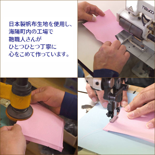 日本製の帆布生地を使用し、鞄職人の手で一品一品を丁寧に仕上げております。