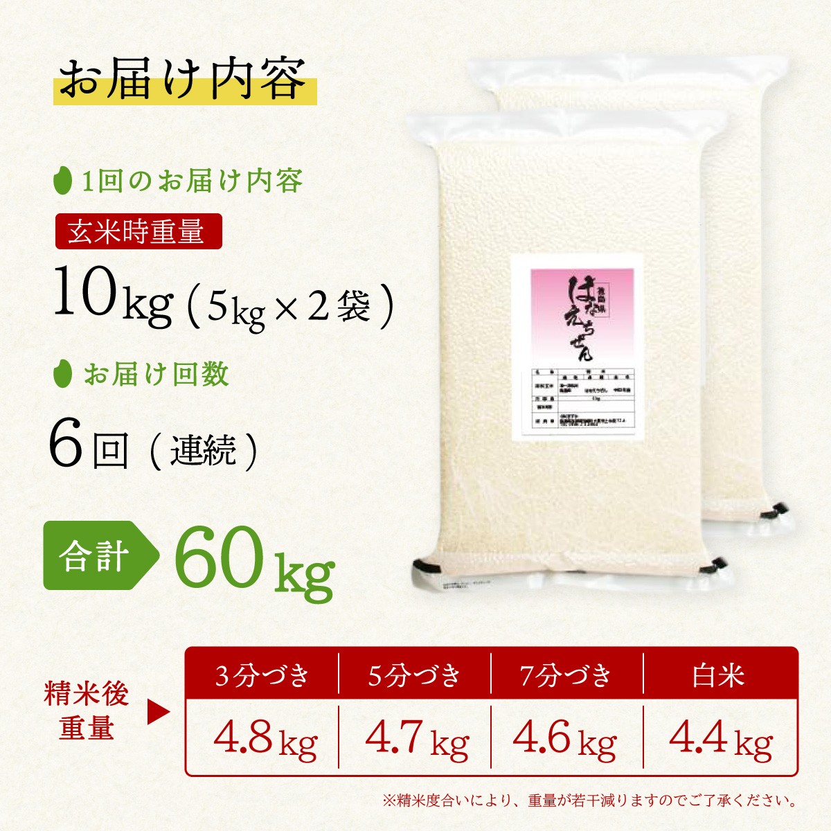 はなえちぜん 白米 5kg×2袋×6回 6ヶ月連続 定期便 60kg 真空パック ハナエチゼン 米 簡易梱包 エコ梱包