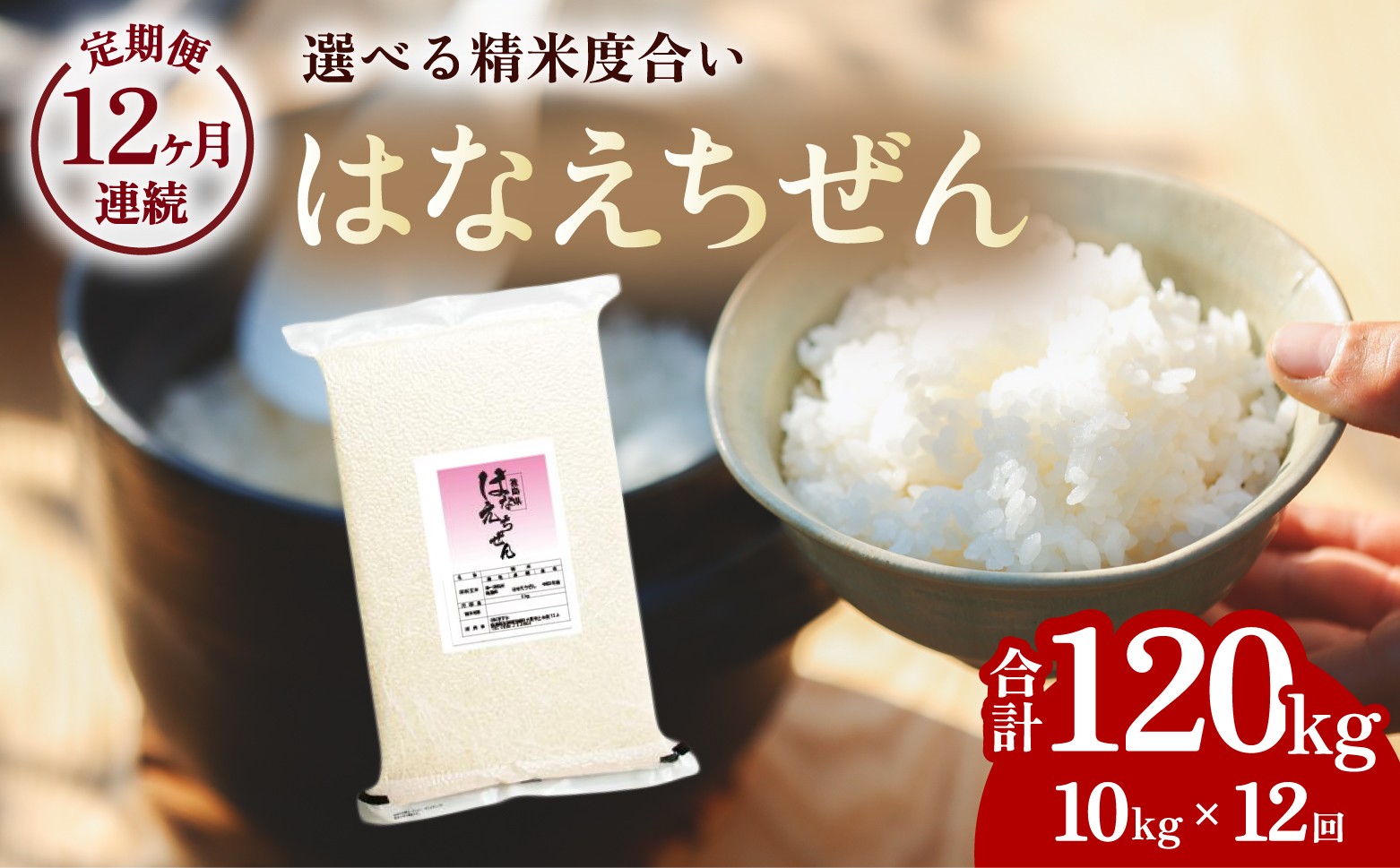 はなえちぜん 白米 5kg×2袋×12回 12ヶ月連続 定期便 120kg 真空パック ハナエチゼン 米 簡易梱包 エコ梱包