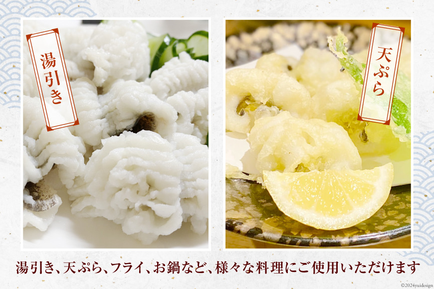 食べやすい大きさにカットしてあるため、湯引き、天ぷら、フライ、お鍋など、様々な料理にご使用いただけます。