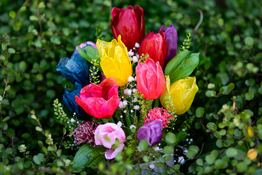そして、プリザーブドフラワーでは珍しいチューリップを使い、徳島県特産の阿波藍で染め上げたいと思ったことが、本返礼品につながりました。