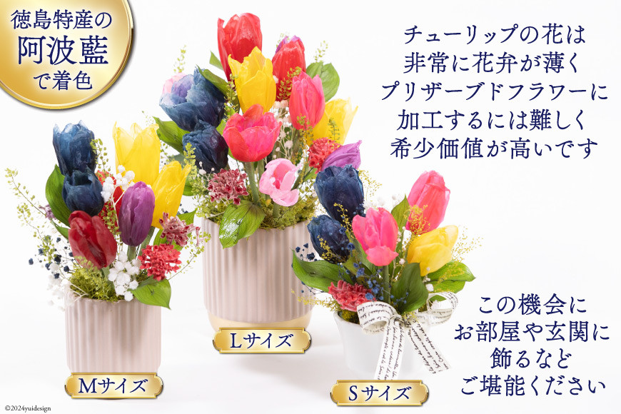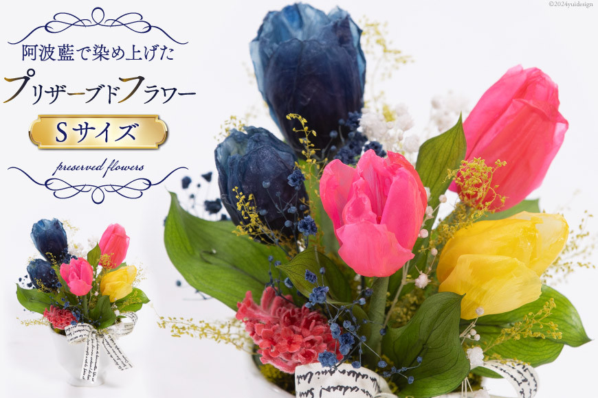 チョイス限定 珍しいチューリップ×徳島特産阿波藍 プリザーブドフラワー チューリップ S [フラワーショップ慶 徳島県 北島町 29az0003] アレンジメント フラワー ミニサイズ