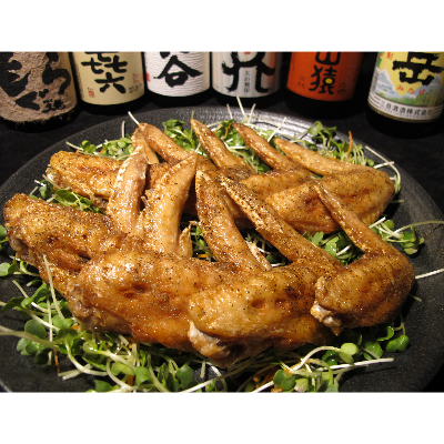 その手羽先をカラッと揚げ、特製のタレに漬け込み、独自にブレンドした数種類のスパイスをたっぷりかけて仕上げた自慢の逸品です。