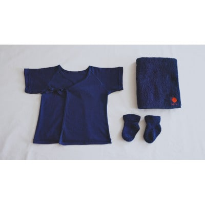 <aeru>桐箱入り・熨斗付き『徳島県から 本藍染の 出産祝いセット』 産着・靴下・フェイスタオル【1421839】