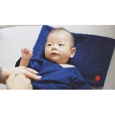 赤ちゃんの「はじめて」を包む3点を、徳島県の本藍染職人さんが化学薬品を使わずに染めて、オリジナルの桐箱に詰めた出産祝いセット。