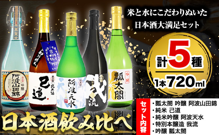 米と水にこだわりぬいた日本酒大満足セット! 日本酒 飲み比べ 5本 セット 日新酒類株式会社《30日以内出荷予定(土日祝除く)》お酒 酒 ギフト プレゼント 送料無料 徳島県 上板町 本醸造 吟醸 純米 純米吟醸 辛口 甘口 阿波 山田錦 st-p
