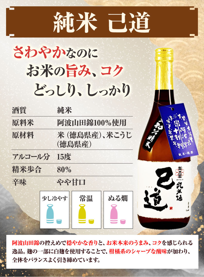 【純米 己道】米(徳島県産)、米麹(徳島県産)