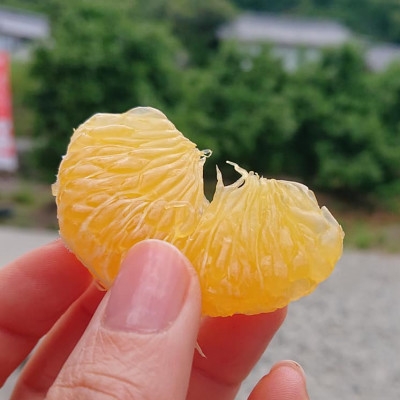 果皮は薄く、手で剥きやすく中の房には果汁がたっぷりと詰まった弾力があり、強い甘みとソフトな酸味で、濃い味のミカンという感じがします。