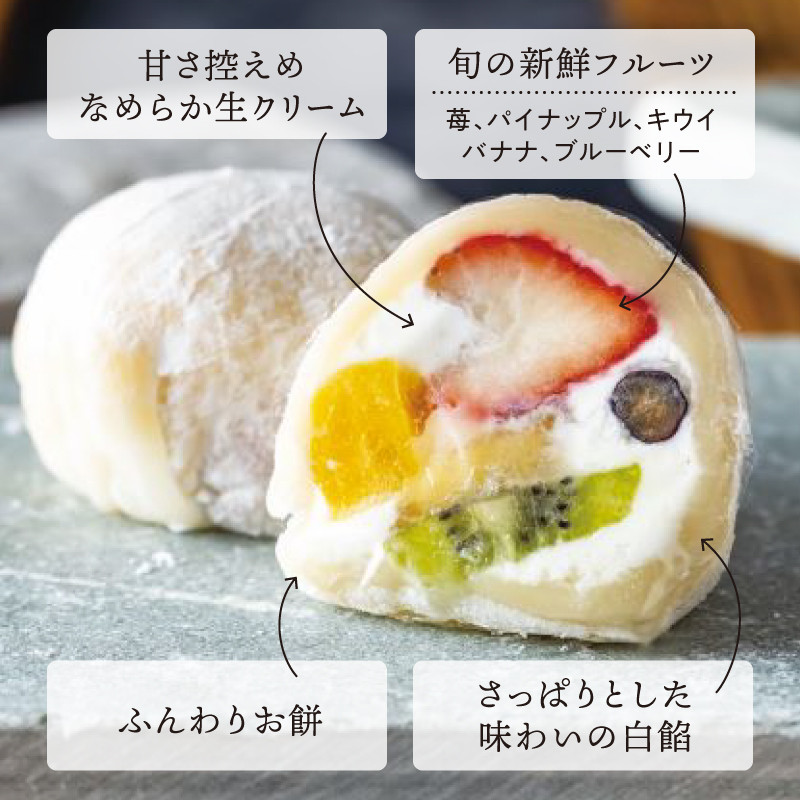 相性抜群のフルーツを選び、なめらかで甘さ控えめの生クリームをふんわりお餅で包みました。