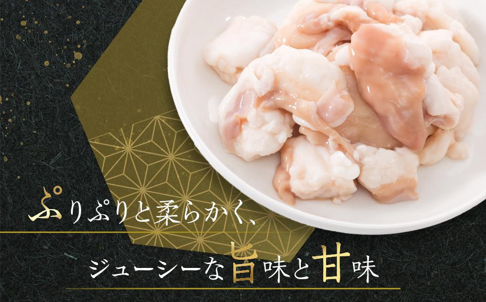 国産牛のぷりっぷりの小腸をひとくちサイズにカットしました。