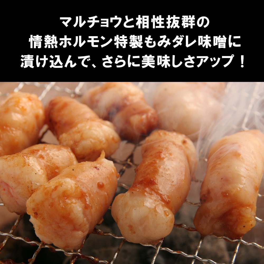 マルチョウと相性抜群の情熱ホルモン特製もみダレ味噌に漬け込んで、さらに美味しさアップ!