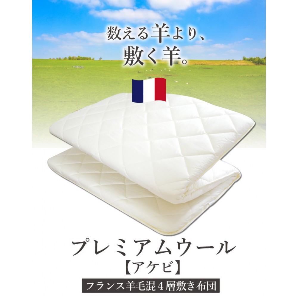数える羊より敷く羊!!フランス羊毛を使用した敷布団 アケビ・羊毛4層固綿敷布団【シングル:約100×210cm】