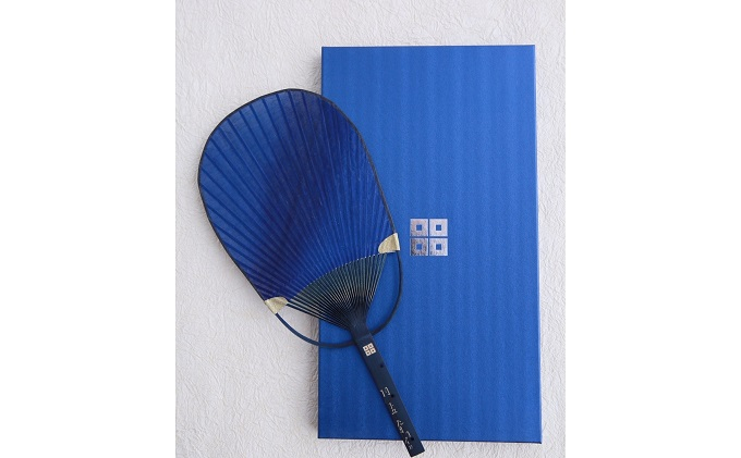藍染めの竹骨にニッカリ青江の銘が入ったうちわです。京極家を護ったニッカリ青江と「打ち払う」が語源の魔除けとしてのうちわの融合。手軽に持ち歩ける丸亀産のニッカリ青江です。