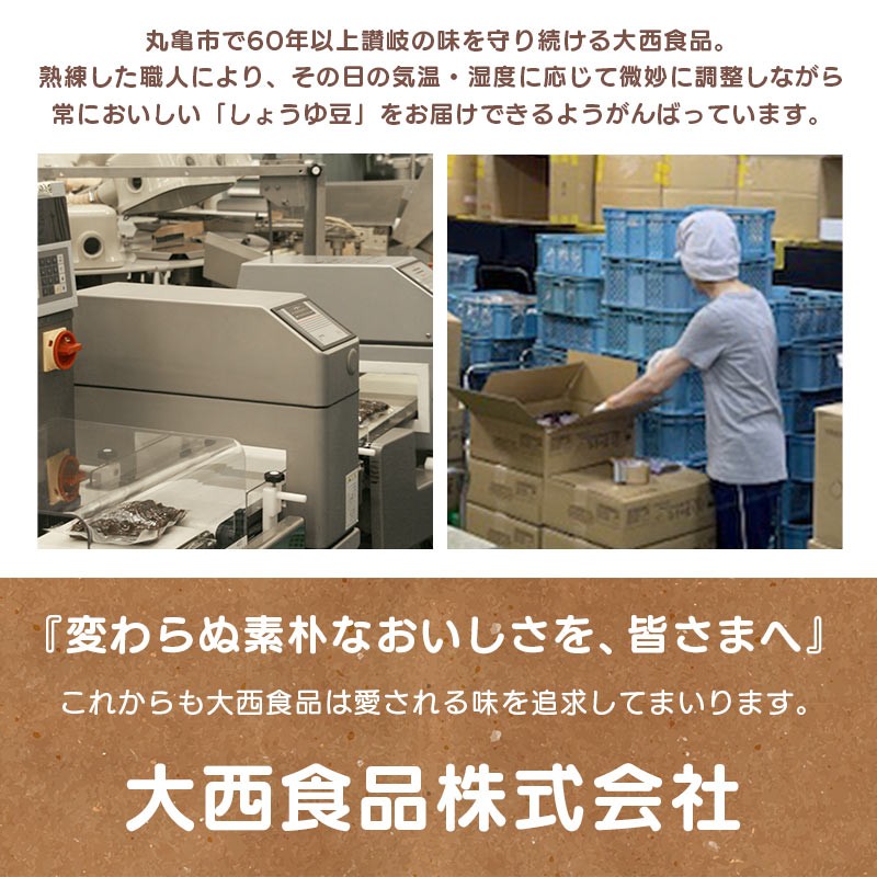 【総務省告示第179号第5条第3号の地場産品基準に該当する理由】:全ての工程を丸亀市内で行っている(豆の味付けから、パック詰め、発送まで)