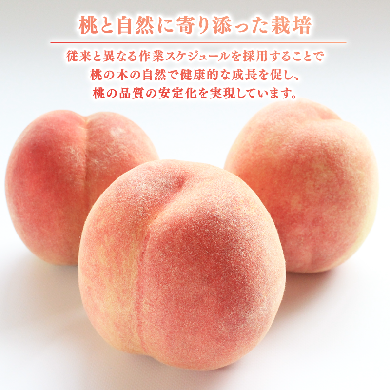 これらの独自の作業スケジュールを採用することによって、桃の品質の安定化と農作業の効率化を実現しています。