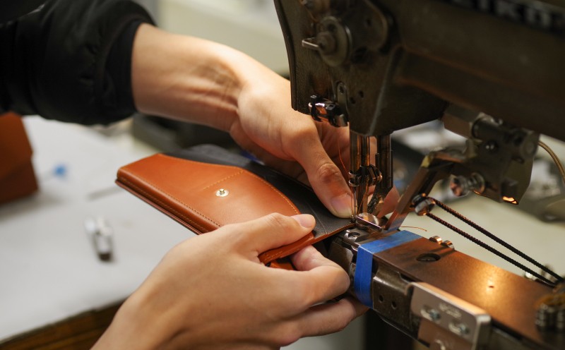 素材の調達、革の裁断、縫製、品質検査、ラッピング、発送まで全ての工程を丸亀市内で行っているため