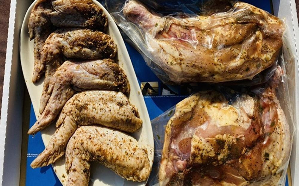 熟成黒にんにくと自社オリジナルのスパイスで漬け込んだ