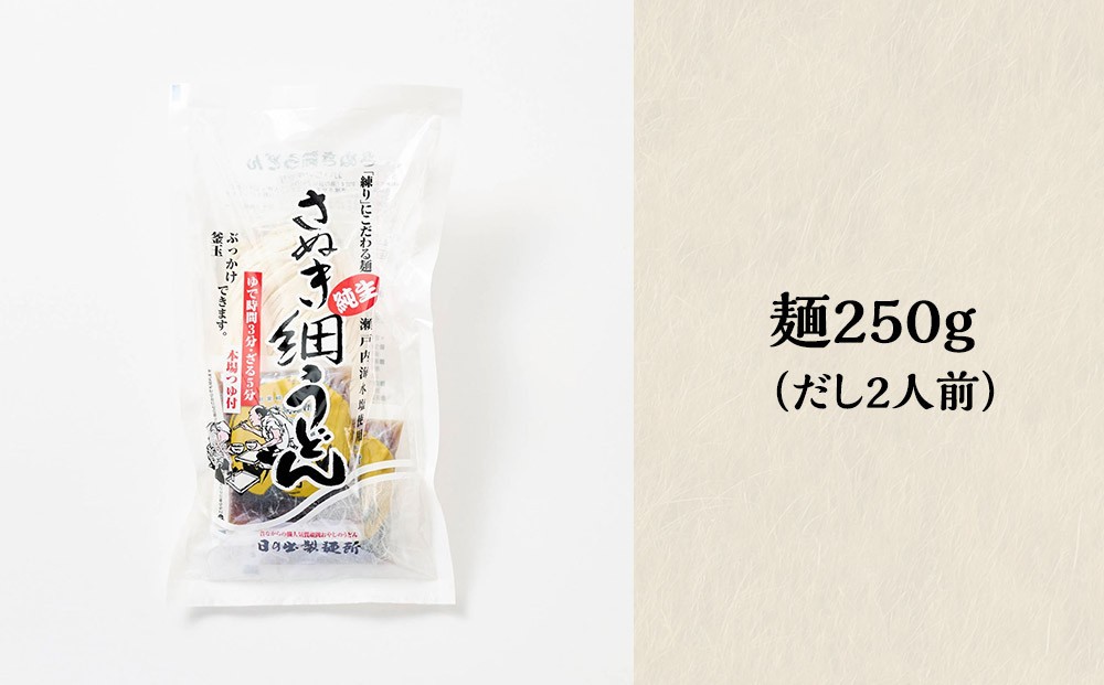 純生細さぬきうどん(麺250g だし2人前付き)です。