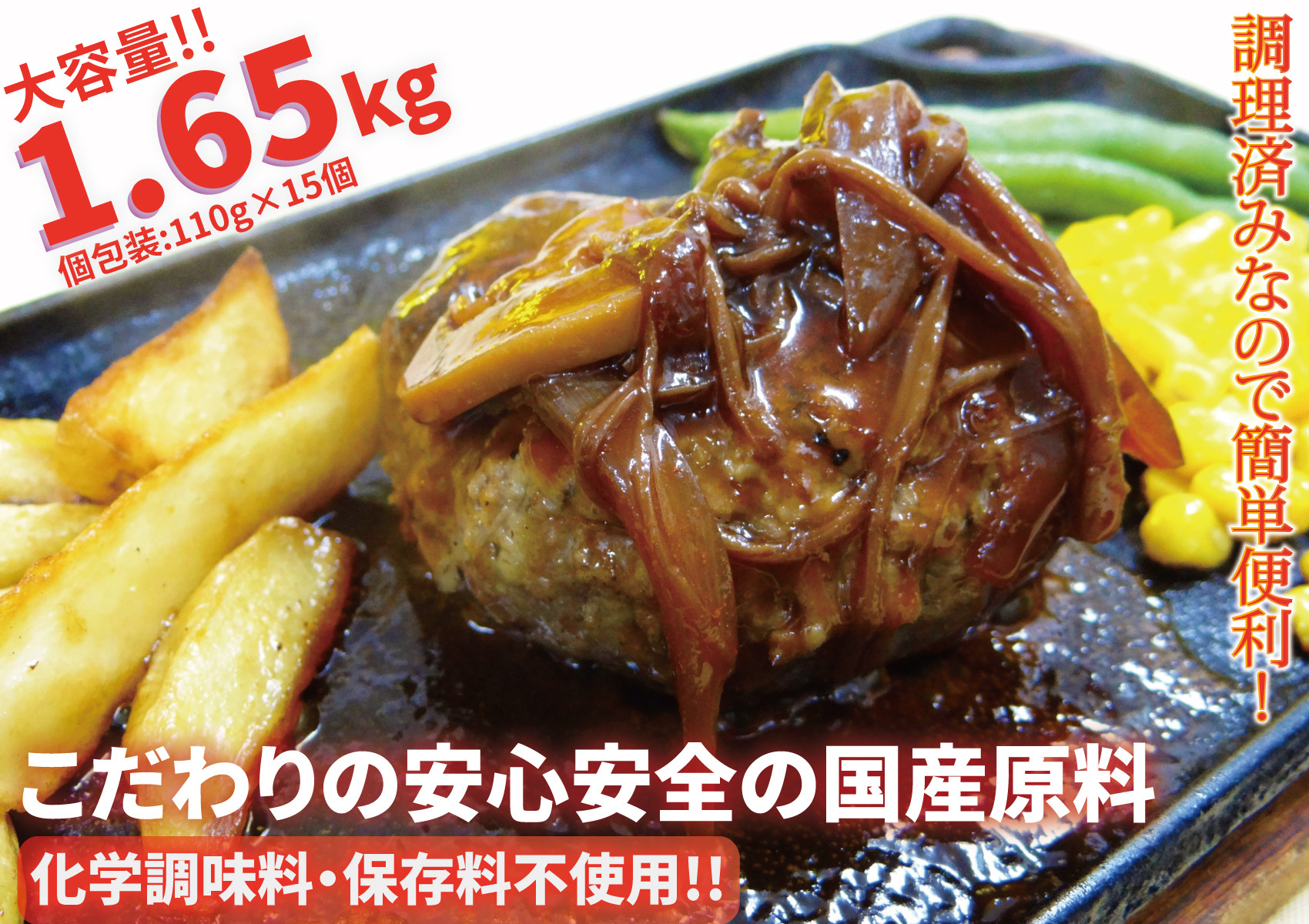 | 容量 | 国産手作りハンバーグ (牛・豚:国産) 110g×15個 |