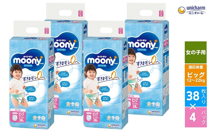 ムーニーマン (女の子ビッグ) 38枚×4パック パンツタイプ ユニ・チャーム おむつ 消耗品 ベビー 赤ちゃん