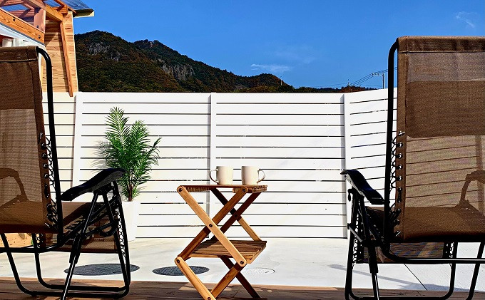 観音寺市の北部に位置し、ウッドデッキ正面には「天空の鳥居」として観光客にも大人気の高屋神社を望むことのできる最高のロケーション。海まで徒歩5分、気軽にマリンスポーツや釣りを楽しめます。