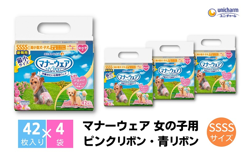 マナーウエア 女の子用 SSSS ピンクリボン・青リボン 42枚×4