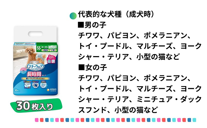 動いてもズレずにモレ安心のやわらか吸収体が体にふんわりピッタリとフィット!でも全面通気シートでムレを防ぎ、デリケートなお肌にも安心。最長12時間(オシッコ4回分)の吸収力(ワンちゃんの個体差あります)