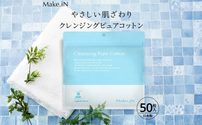 Make.iN クレンジング ピュア コットン 50枚入 CICA ヒト幹 コラーゲン うるおい 保湿