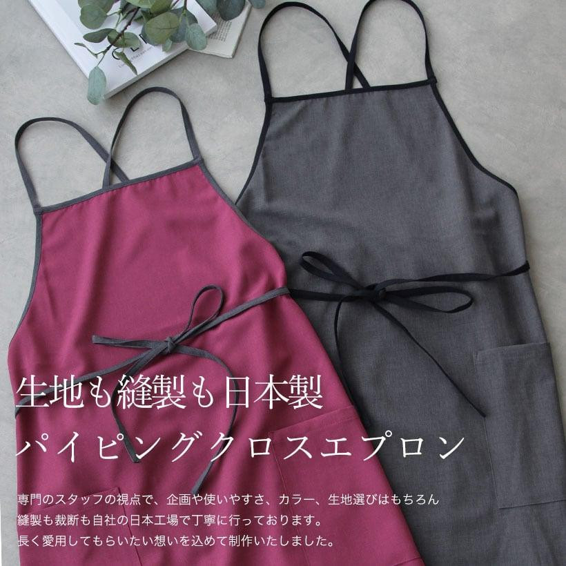 ノンアイロンでお手入れ簡単 バイカラーデザインのエプロン バイカラー クロス エプロン【全6色展開】