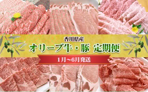 [№4631-2518]香川県産 オリーブ牛、豚 1kg 定期便(1月~6月…