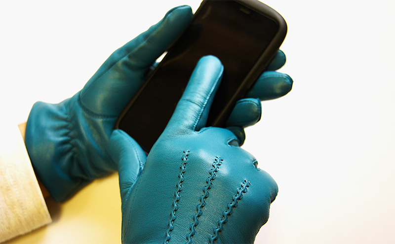 掌にはタッチパネル対応の革を使用しスマートフォンの使用も可能です。