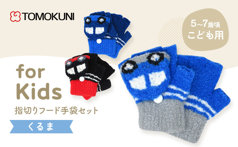 [№4631-2703]くるま指切りフード手袋 子供用 3双セット