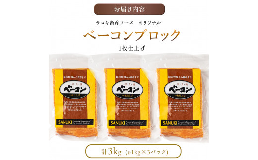 地元でも好評をいただきギフトやプレゼント用に多くの方にご利用いただいています。 【ふるさと納税】ブロック ベーコン 一枚仕上げ 豚肉 燻製 約1kg×3枚 総重量3kg [ ベーコン ブロック スモーク 燻製 豚肉 豚バラ肉 送料無料 冷蔵 厚切り おつまみ キャンプ パスタ 焼肉 BBQ 人気 三豊市 20000 20, 台 返礼品 サヌキ畜産フーズ ]