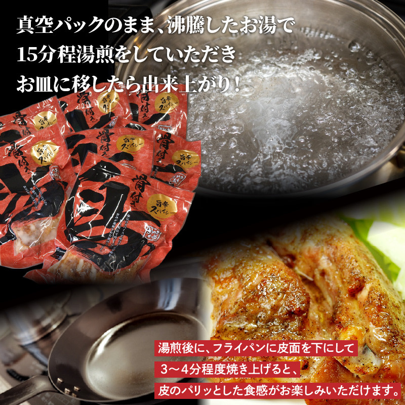 讃岐名物骨付き鳥。オリジナルのスパイスで味付けをして、じっくりとオーブンで焼き上げています。真空パックのまま沸騰したお湯で15分程湯煎をしていただきお皿に移したら出来上がり!お好みで湯煎後に軽く熱したフライパンに皮面を下にして3~44分程度焼き上げたら、皮のパリッとした食感がお楽しみいただけます。