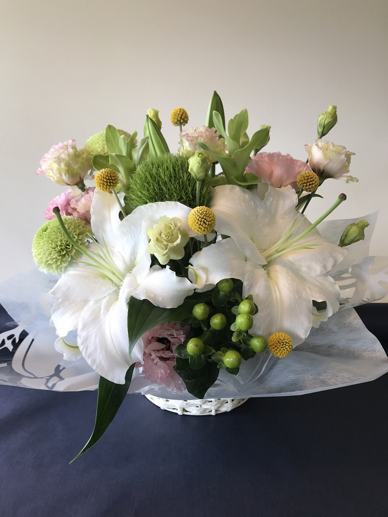 四季折々三豊市産のお花で構成、新鮮で季節感あふれるお供え用アレンジメント