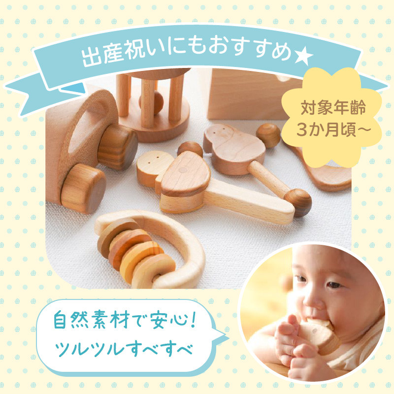 赤ちゃんが初めて出会うおもちゃは、安心安全の自然素材で。