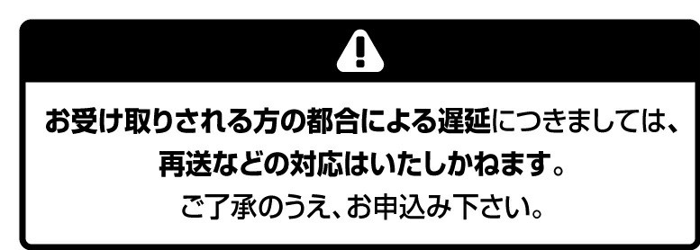 ※ご都合でお受け取りができない場合の返品、交換はお受けできません。