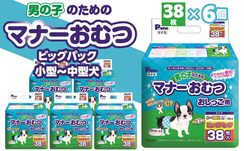 吸収面積が広がり吸収力UP,新波型ストライプシートで吸収スピードUP 【ふるさと納税】男の子 マナーおむつ ビッグパック 小型 ~ 中型犬 38枚×6(228枚) おむつ おしっこ用 マーキング対策 マーキング おもらし おでかけ 介護 吸収 吸収力 簡単 ワンタッチ ペット ペット用 ペット用品 犬 犬用 愛犬 オス ペットグッズ グッズ 日用品 送料無料