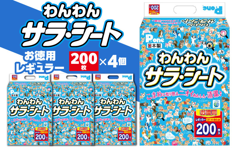 うす型なのでこまめに取り替え衛生的 【ふるさと納税】わんわん サラ・シート レギュラー 200枚×4(800枚) シート シーツ トイレシート ペットシート トイレ トイレシーツ ペット用 犬用 ペット 犬 ペット用品 犬用品 ペットグッズ グッズ 犬グッズ 消耗品 うす型 衛生的 日本製 日用品 香川県 送料無料