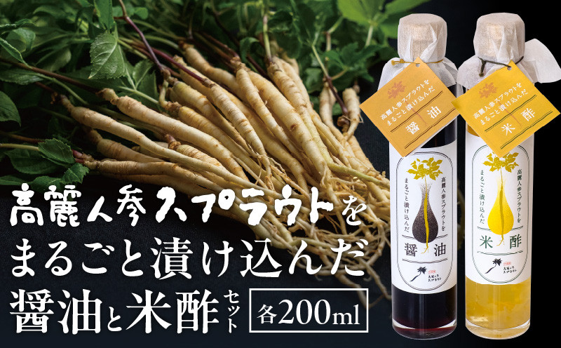 自然豊かな三豊市で育てた高麗人参スプラウトをまるごと漬け込んだ醤油と米酢セット 【ふるさと納税】高麗人参スプラウトをまるごと漬け込んだ醤油と米酢セット 高麗人参 高麗 人参 スプラウト 漬け込み 醤油 米酢 酢 調味料 調味 ドレッシング 炒め物 料理 普段使い 食事 食生活 薬膳 薬膳醤油 薬膳米酢 お取り寄せ おすすめ 香川県 三豊市 送料無料